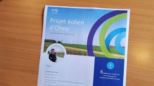 La société EDP Renewables a récemment distribué en toutes boîtes un flyer d’information relatif au projet éolien actuellement à l’étude dans la commune d’Ohey. Pour rappel, le projet vise l’installation de 6 éoliennes dans les campagnes situées entre Matagne, Jallet et Evelette. La commune souhaite réagir et préciser un certain nombre d’éléments qui, selon nous, ne sont pas présentés avec suffisamment de clarté dans cette communication et qui peuvent dès lors prêter à confusion.