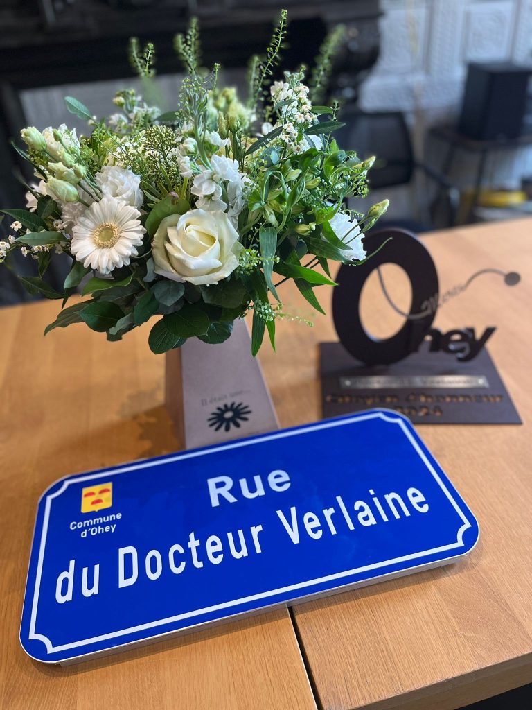Pour perpétuer son souvenir, le Conseil communal a décidé de rebaptiser la rue Marteau en rue du Docteur Verlaine.