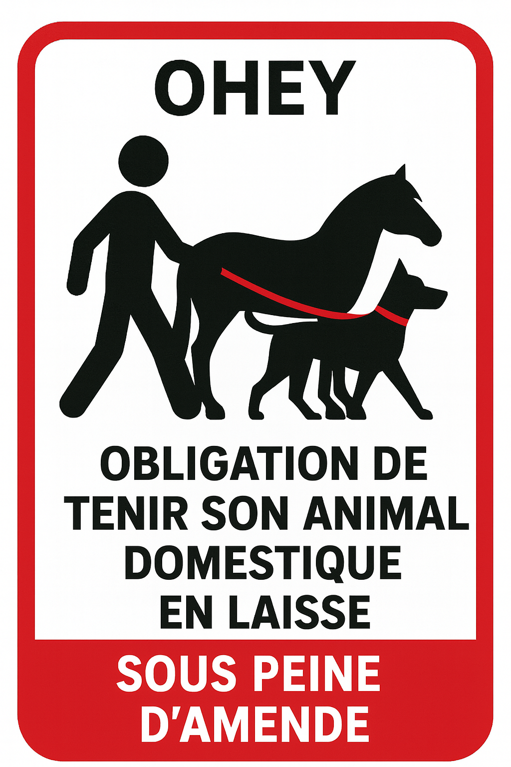 La commune d’Ohey rappelle à tous les propriétaires d’animaux domestiques l’importance de tenir leur animal en laisse dans l’espace public. Cette mesure, encadrée par le Règlement Général de Police Administrative communal (RGPA) et le Code forestier wallon, vise à garantir la sécurité de tous (promeneurs, enfants, autres animaux et l’animal lui-même).