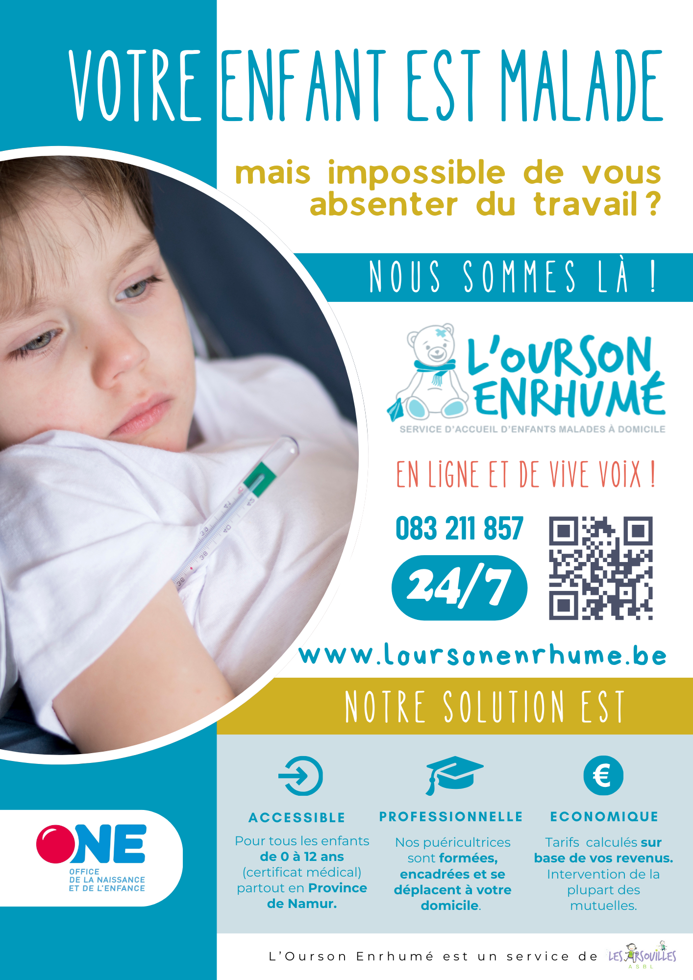 Notre équipe de puéricultrices professionnelles de la petite enfance, agréée et reconnue par l’ONE, propose un service de garde d’enfants malades à domicile, accessible à toutes les familles de votre commune.